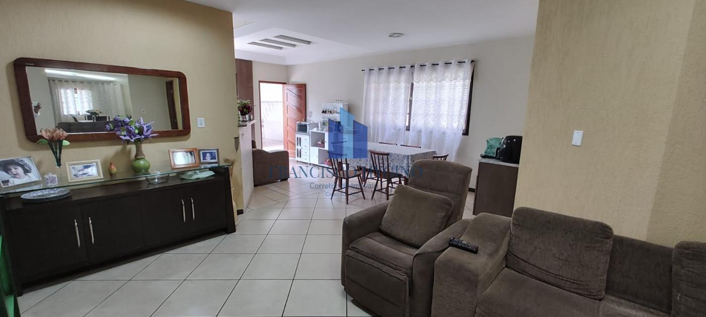 Térreo- Varanda, sala com 50 m2, sala de estar, lavabo, copa, cozinha com móveis planejados, área de serviço, área de lazer com churrasqueira e fogão à lenha, garagem.