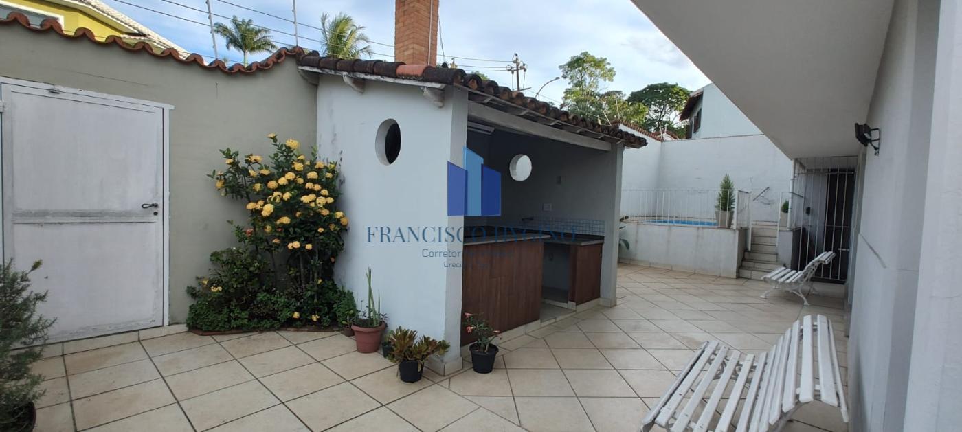 1º Pavimento - Hall de entrada, 02 escritórios, 01 quarto, salão de festas, banheiro social, passagem lateral, cozinha, área de lazer com piscina, churrasqueira, jardim, garagem para 03 carros, portão automatizado e câmeras de vigilância.