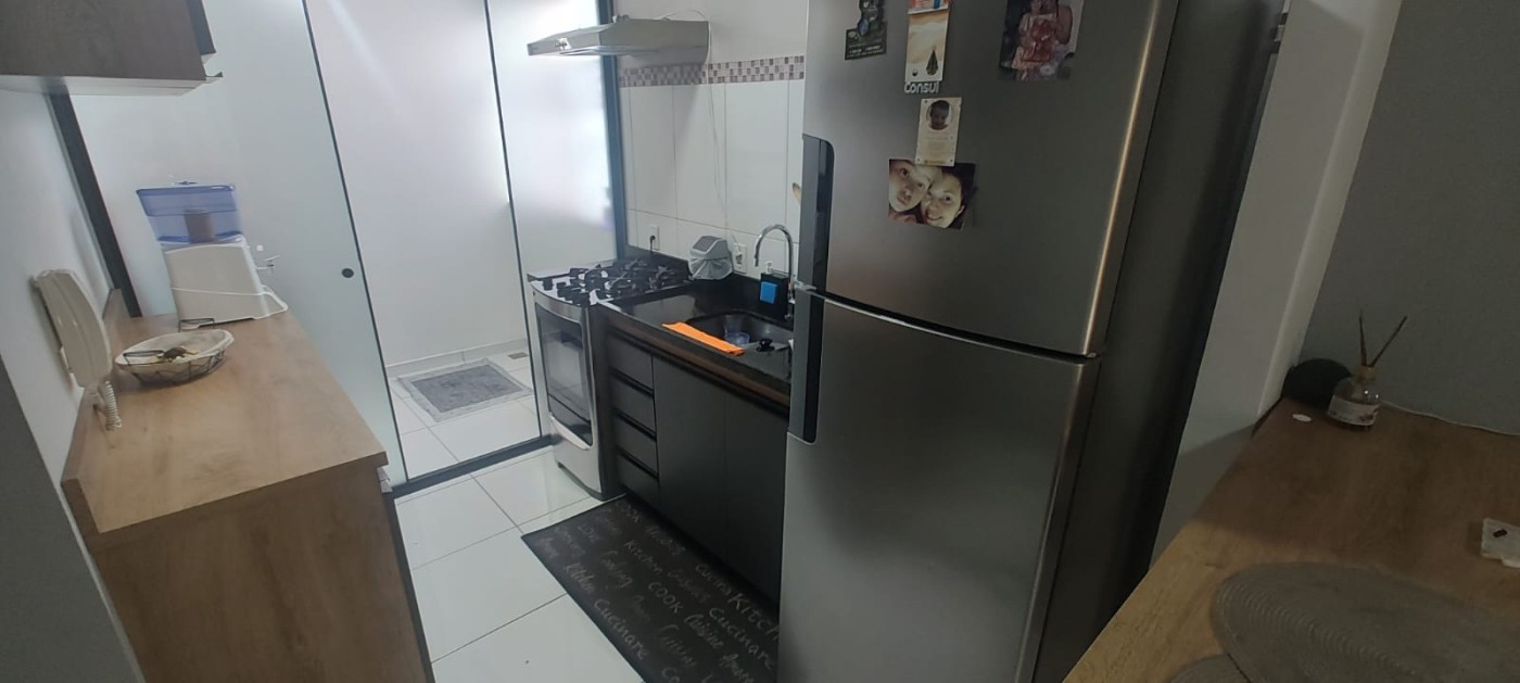 Cada ambiente revela seu diferencial: ar condicionado instalado, móveis planejados que otimizam o espaço e portão eletrônico que assegura comodidade e segurança na rotina. A cozinha, funcional e arejada, conecta-se à área de serviço, conferindo praticidade às tarefas domésticas. A vaga de garagem traz ainda mais tranquilidade ao seu dia a dia, enquanto o condomínio oferece salão de festas e churrasqueira para celebrar momentos especiais sem sair de casa. Com IPTU de R$ 698,37, é um imóvel que equilibra sofisticação e economia.